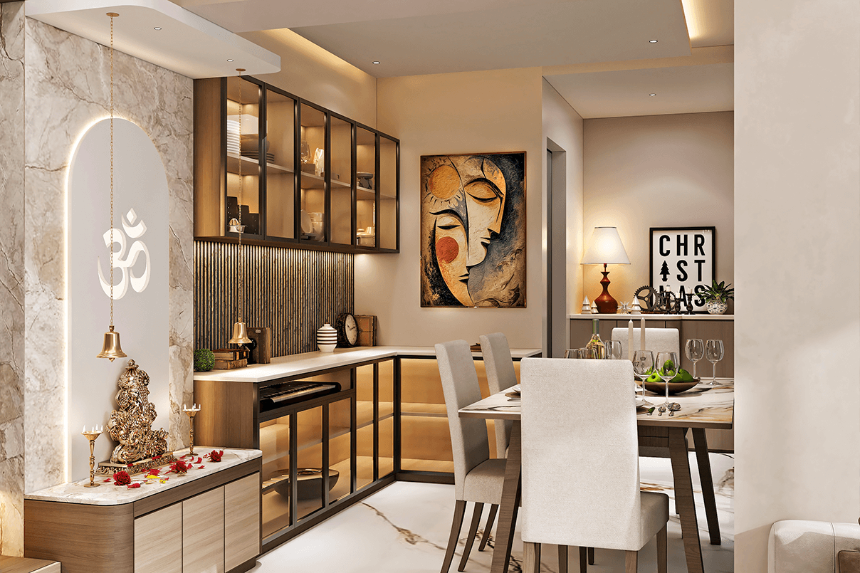 The home at Fortune Heights, Barasat is a carefully curated living space that reflects modern elegance, comfort, and thoughtful functionality. Designed and executed by Jais Interio, this residence showcases a harmonious blend of refined aesthetics and practical interior solutions tailored for contemporary lifestyles.