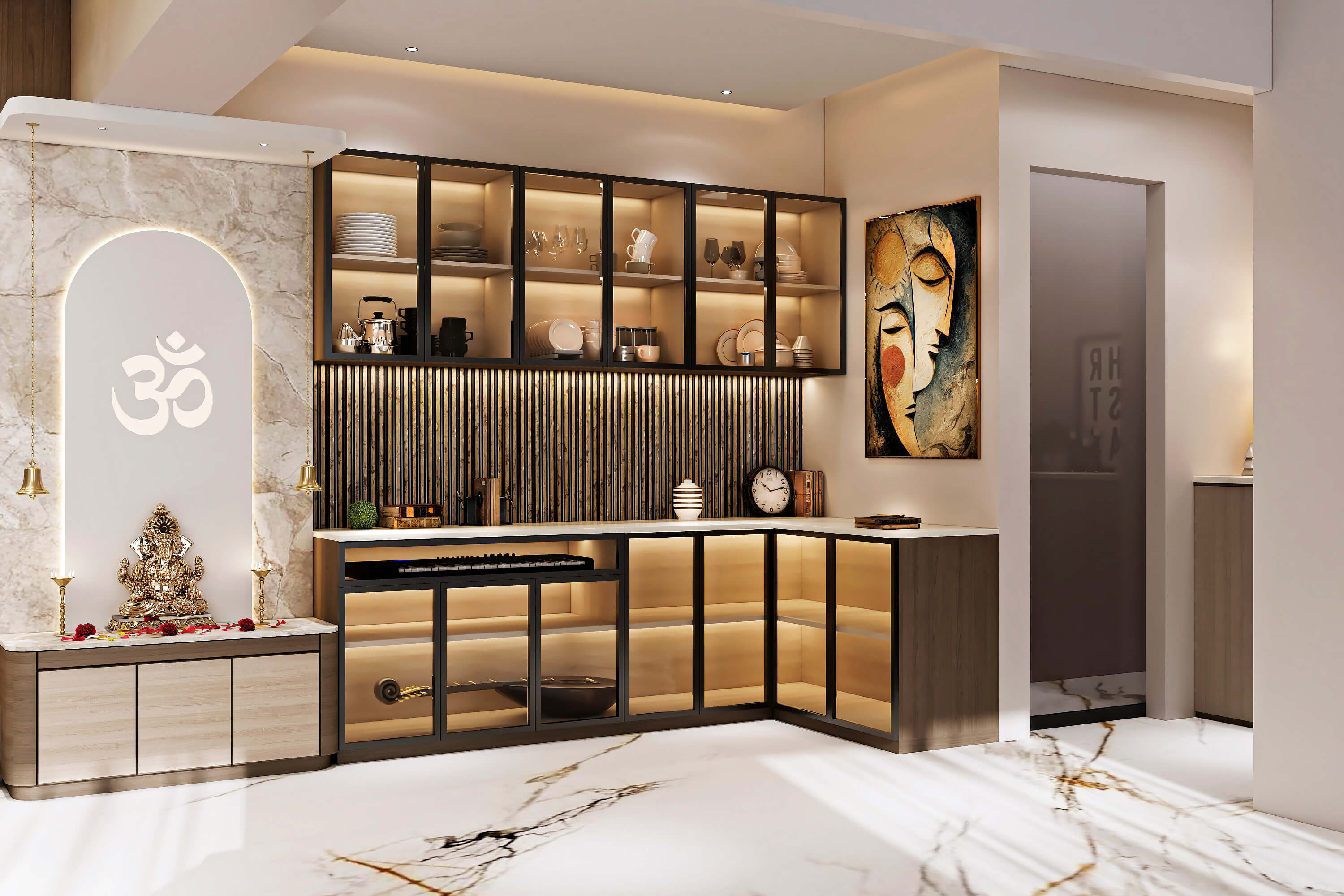 The home at Fortune Heights, Barasat is a carefully curated living space that reflects modern elegance, comfort, and thoughtful functionality. Designed and executed by Jais Interio, this residence showcases a harmonious blend of refined aesthetics and practical interior solutions tailored for contemporary lifestyles.