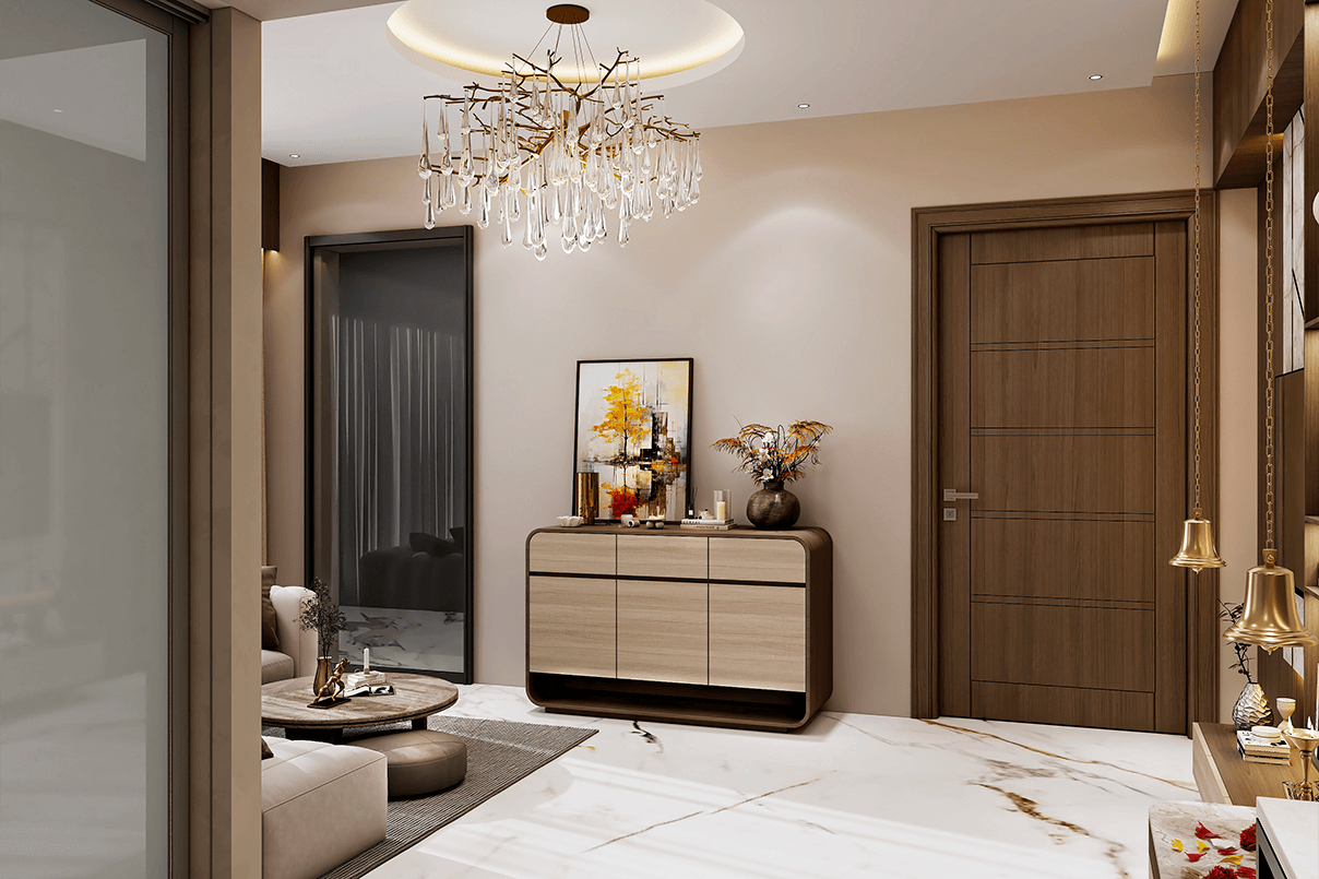 The design concept centers around minimal sophistication with warm undertones. A neutral palette enriched with textured surfaces, soft lighting, and clean architectural lines ensures the home feels spacious, calm, and timeless.