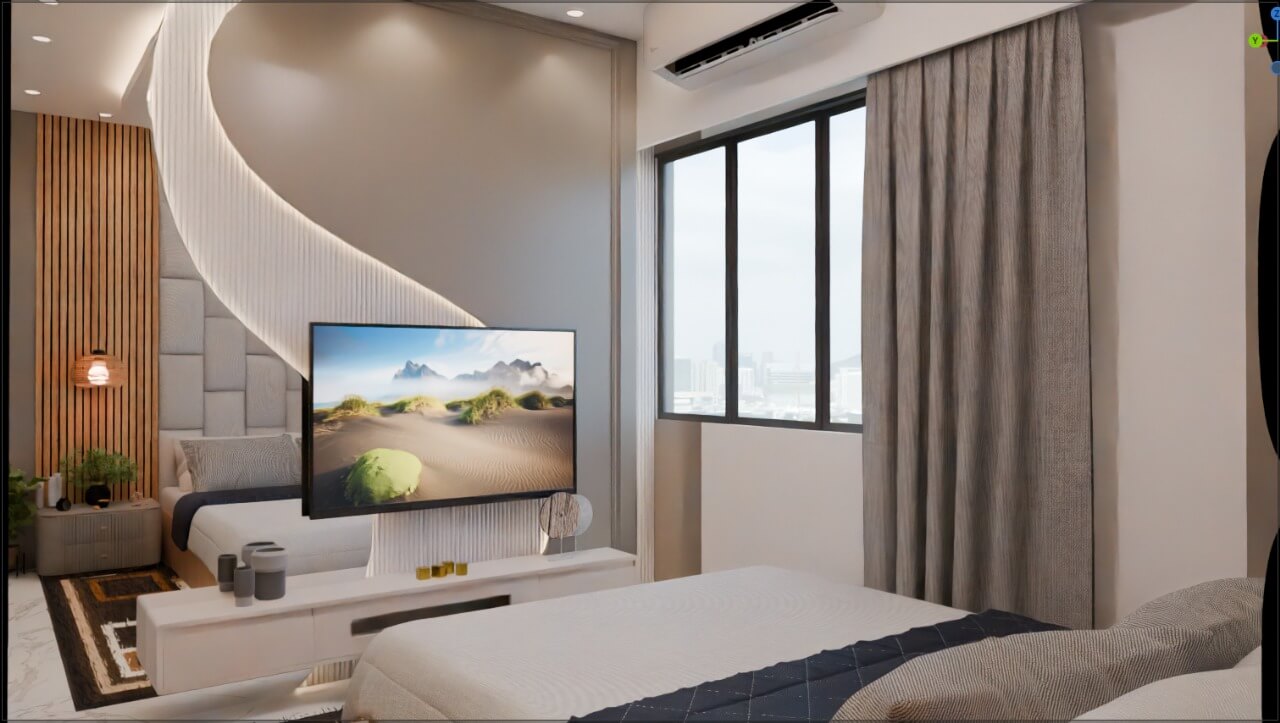 The design concept centers around minimal sophistication with warm undertones. A neutral palette enriched with textured surfaces, soft lighting, and clean architectural lines ensures the home feels spacious, calm, and timeless.